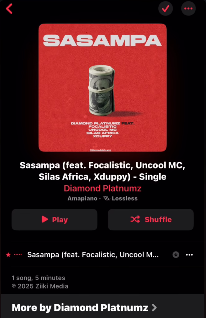 “Sasampa” ni neno lililopata umaarufu hivi karibuni, likiwa na maana ya hela au pesa, Na Hii inakuwa kolabo ya Pili (2) Kufanyika Kutoka Kwa Diamond Na Focalistic, Huku Kazi Yao Ya Kwanza Ikiwa Ni ‘Iyo’ Ya 2021.