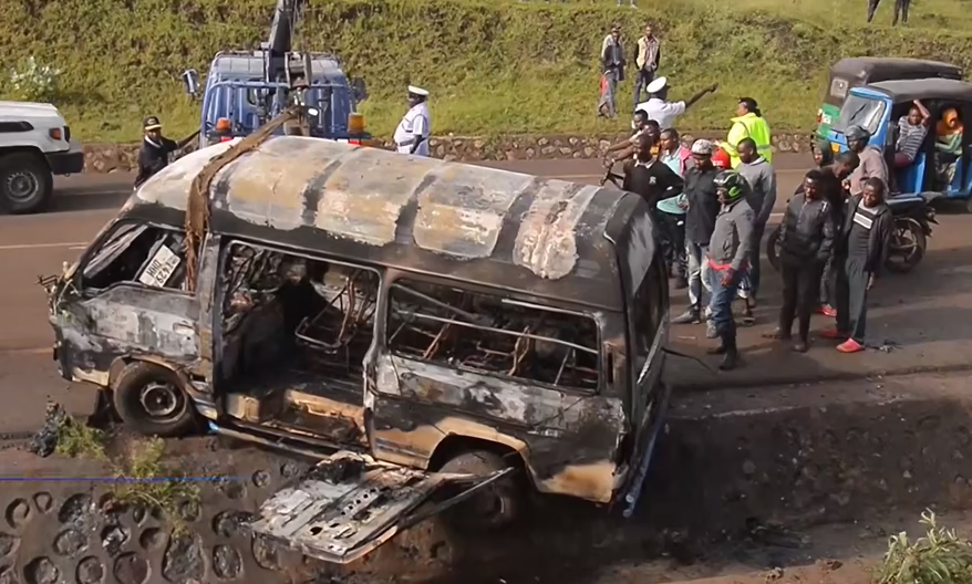 Gari aina ya Hiace linalotumika kama daladala kusafirisha abiria katika eneo la Morombo, limeteketezwa kwa moto katika mtaa wa Erangau, kata ya Tetari, mkoani Arusha barabara ya East Afrika, baada ya kugonga dereva wa bodaboda aliyekuwa akivuka barabara bila kuchukua tahadhari.