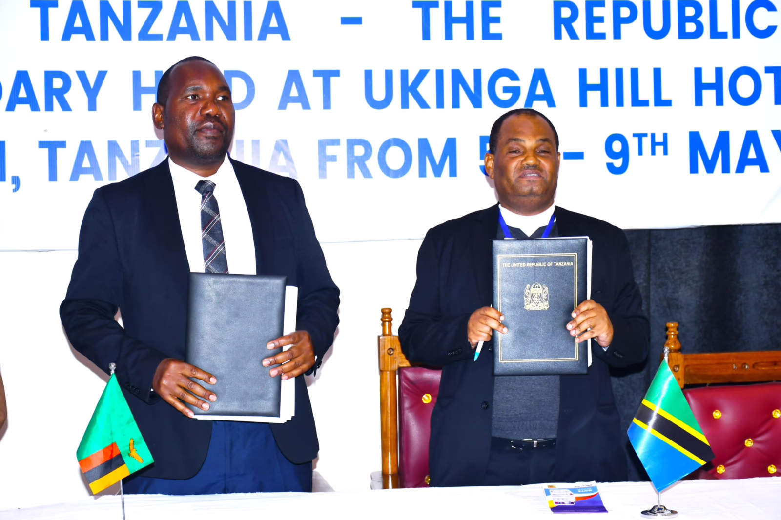 Utiaji saini makubaliano hayo umefanywa kati ya kiongozi wa timu ya Tanzania ambaye ni Mkurugenzi wa Upimaji na Ramani Wizara ya Ardhi Nyumba na Maendeleo ya Makazi Bw. Hamdouny Mansour na Bw. Kelvin Chibangula ambaye ni kiongozi wa timu ya wataalamu kutoka nchini Zambia.